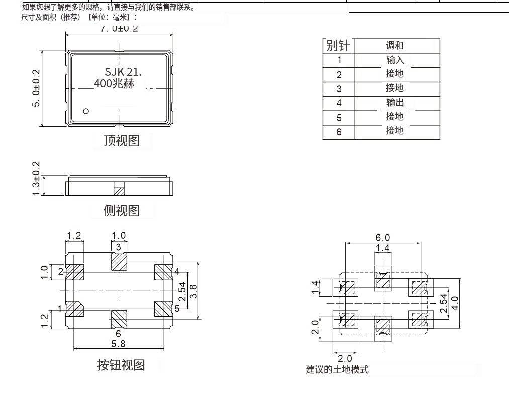 1. 小型贴片金属封装石英晶体滤波器(MCF),产品尺寸7.0×5.0×1.3mm