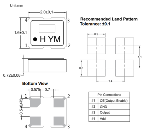 HSO211S晶振外形尺寸: