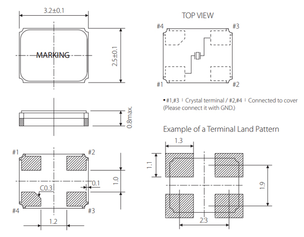 SX-3225贴片晶振外形尺寸: